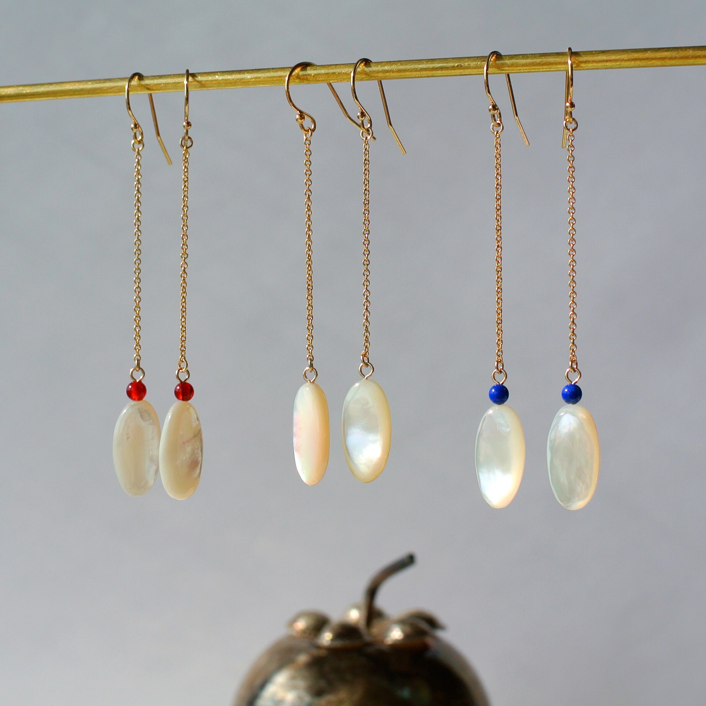 フレンチワイヤーピアスに長めのチェーンをつけてモードに仕立てました。