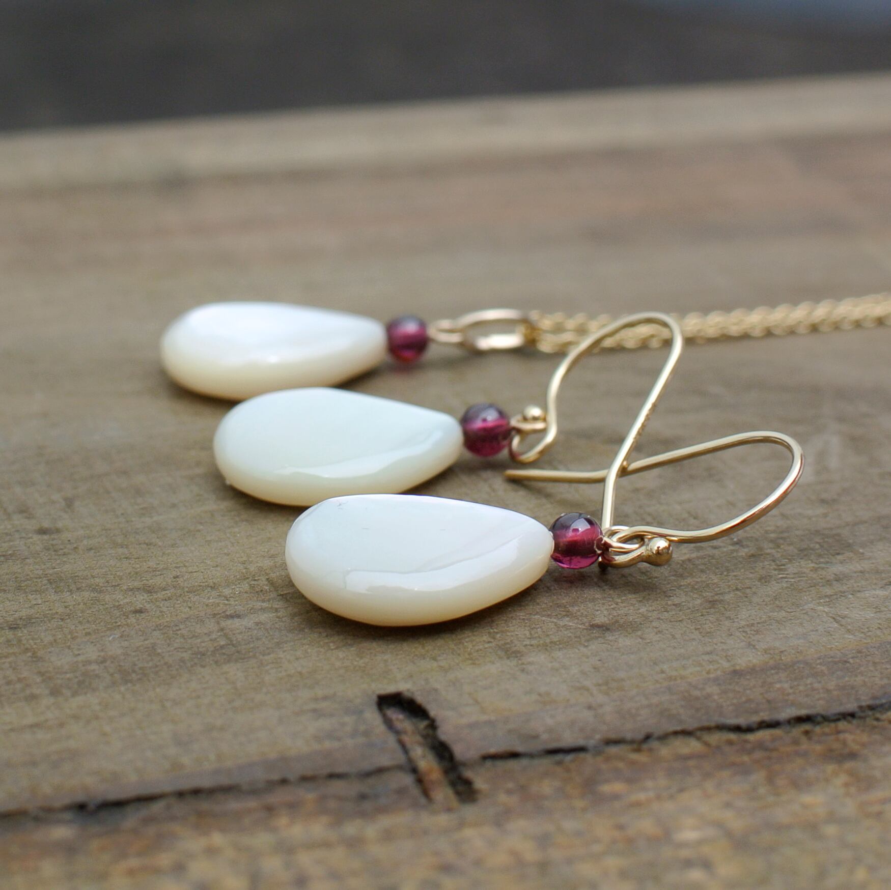 耳元でゆらゆらと揺れるフレンチワイヤーピアスにガーネットの色を添えて華やかな印象にしました。