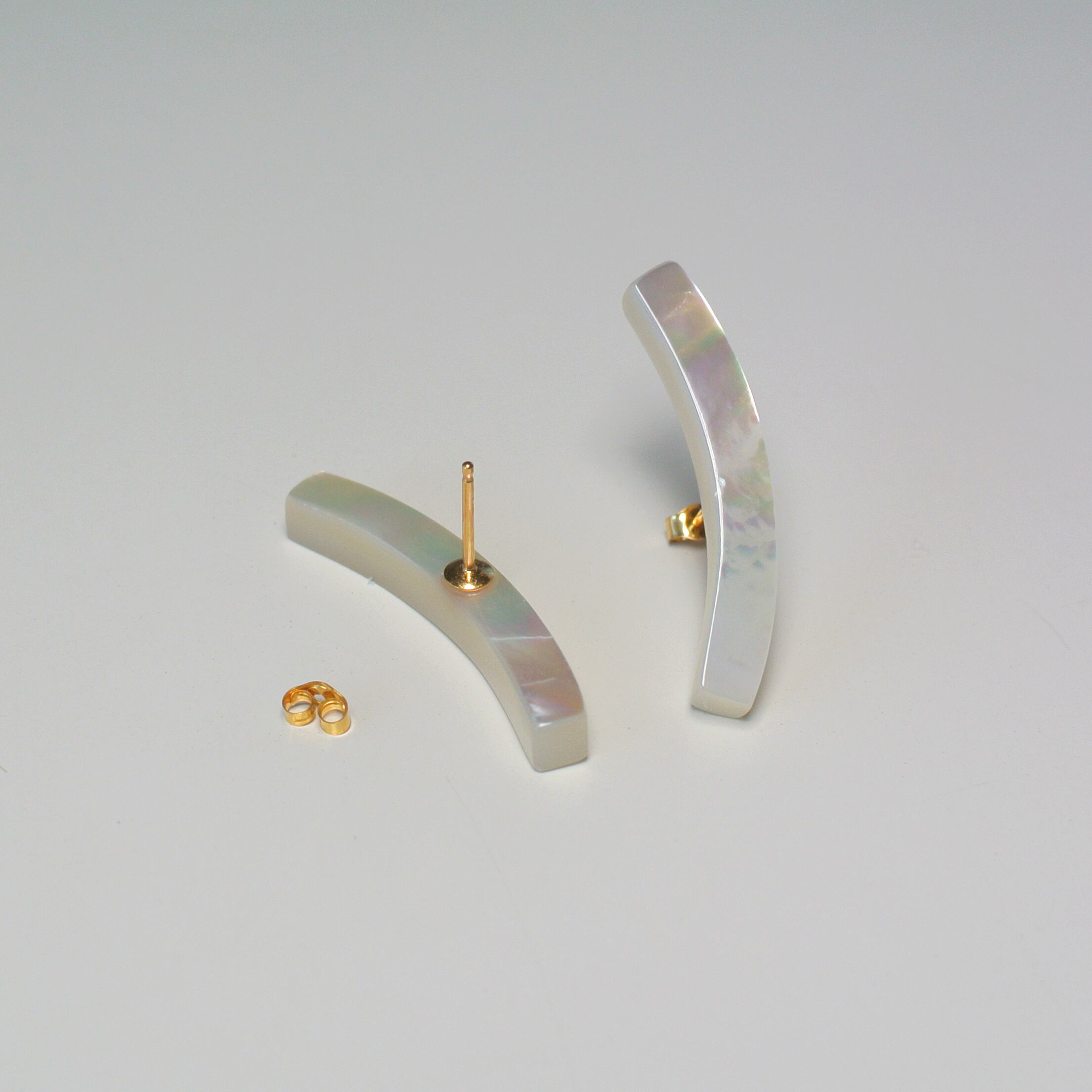 繊細さが特徴のカーブ型スクエアバータイプのマザーオブパールピアス。