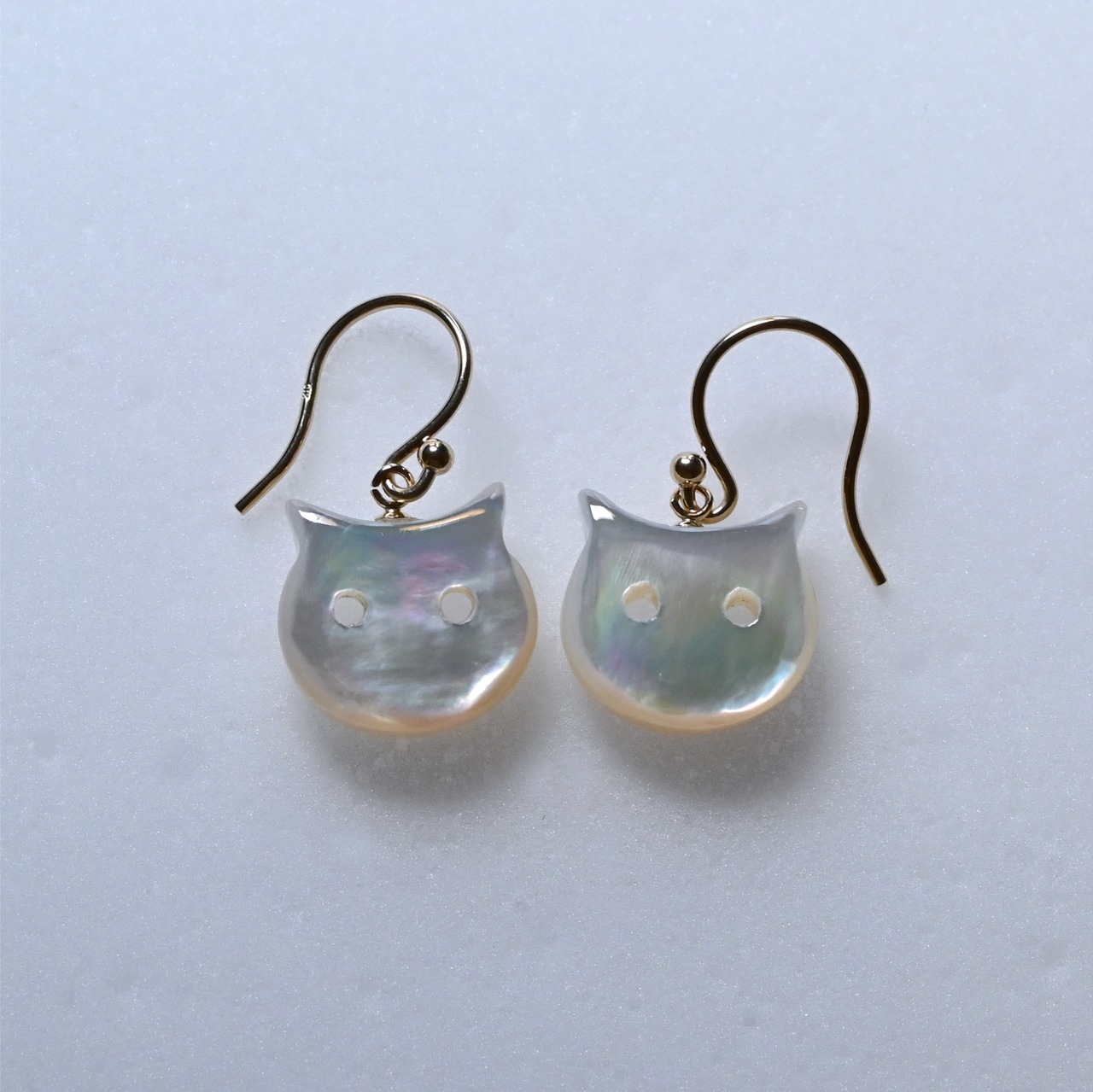 短毛種のネコをモチーフにした、美しい輝きのピアスです。